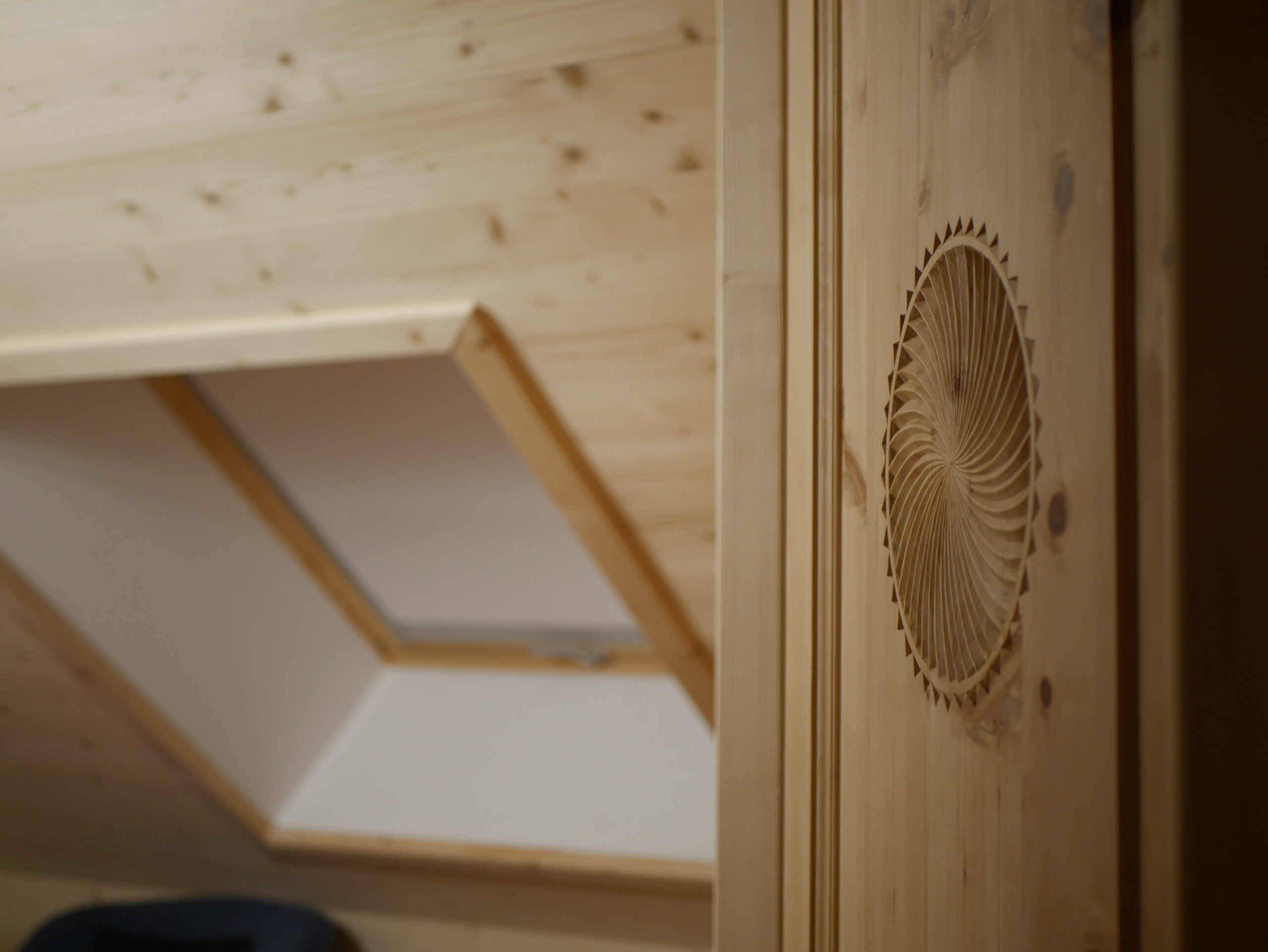 Nous travaillons avec du bois local dès que cela est possible, notamment avec du mélèze, une essence solide et durable qui s’adapte aussi bien à l’intérieur qu’à l’extérieur.